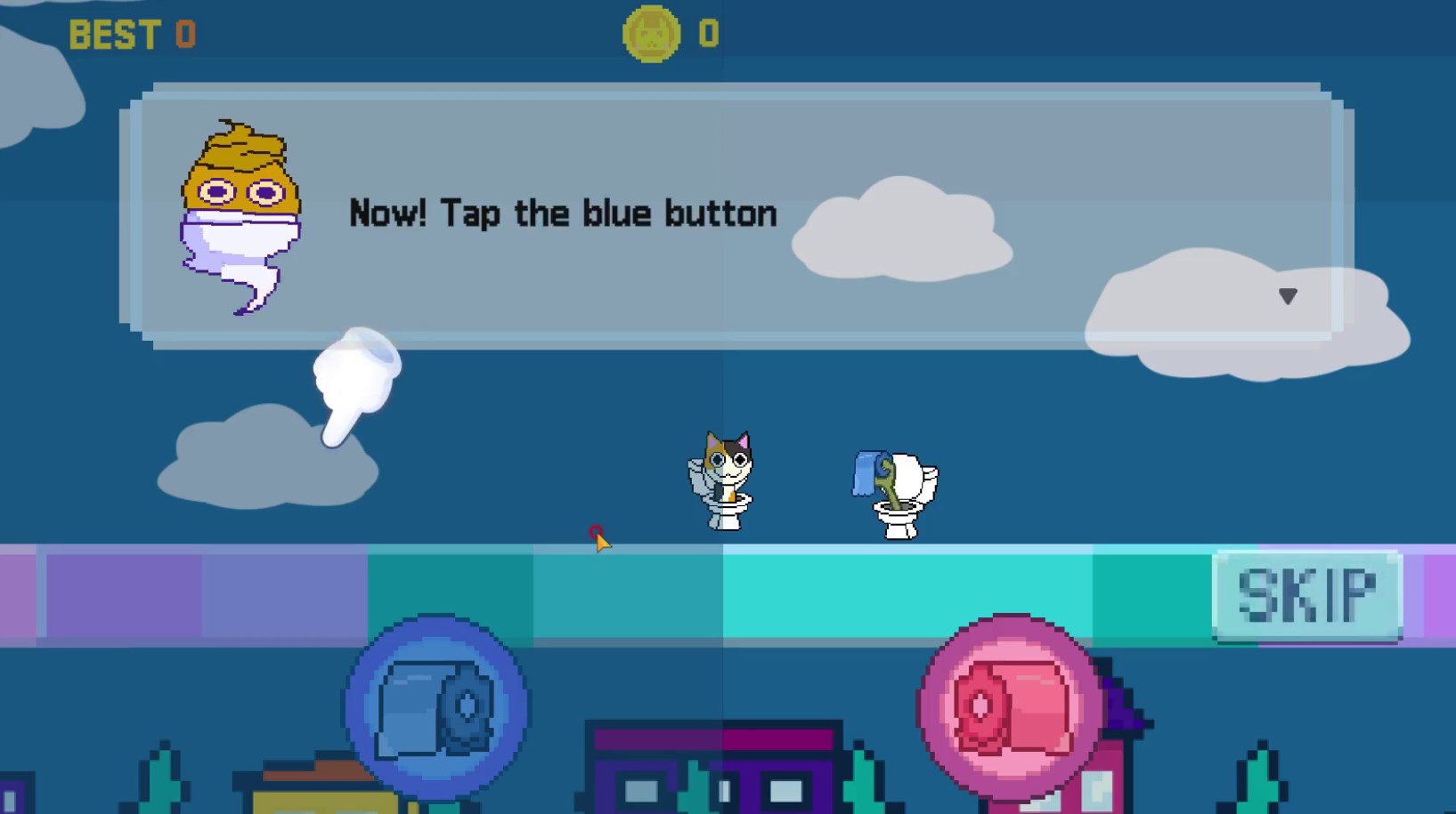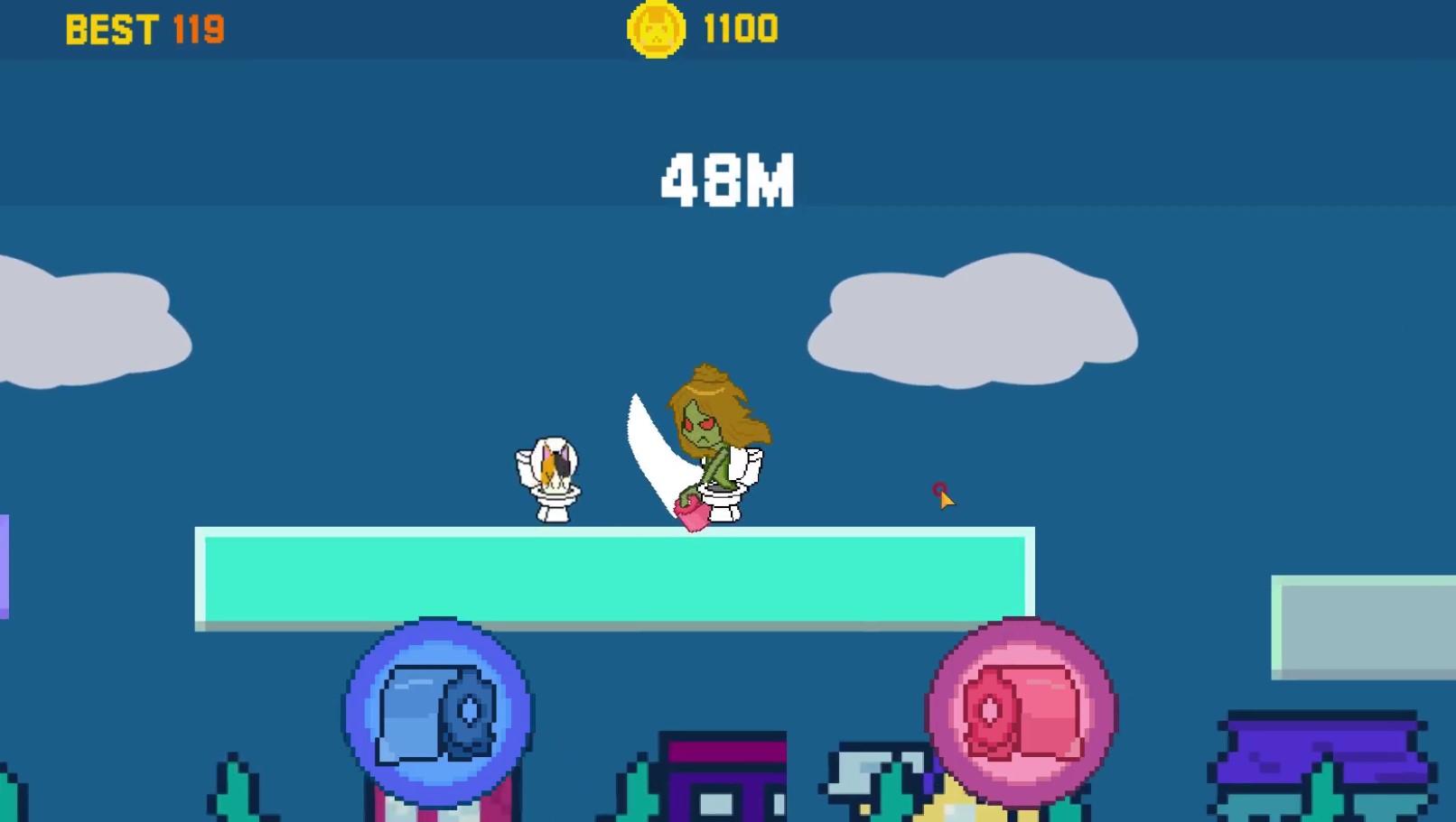 You are a brave cat spirit trapped in a cursed toilet world. Evil toilets, ghostly hands, and flying rolls of toilet paper await you.